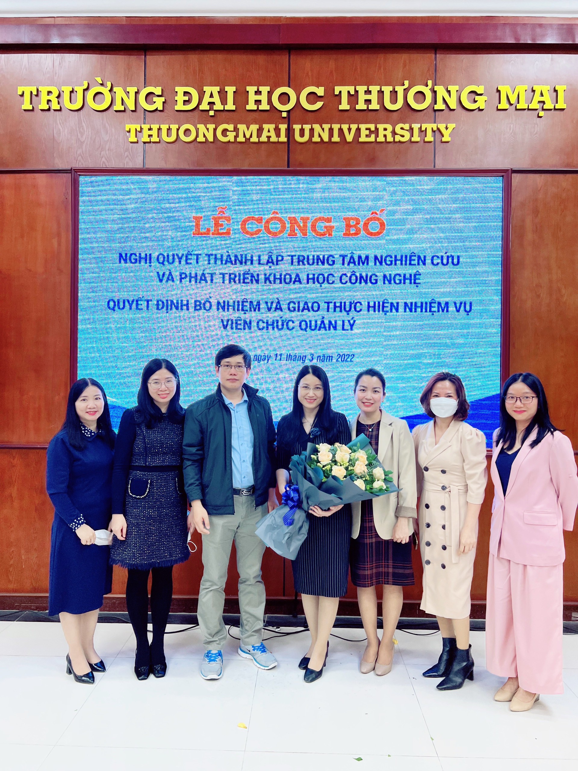 Sáng ngày 11/3/2022, tại hội trường H3, Trường Đại học Thương mại đã long trọng tổ chức lễ Công bố quyết định thành lập Trung tâm Nghiên cứu và Phát triển Khoa học công nghệ và các quyết định bổ nhiệm viên chức quản lý. Trong đó, buổi lễ đã công bố Quyết định bổ nhiệm: Quyết định số 293/ QĐ-ĐHTM bổ nhiệm TS. Đỗ Hồng Quyên giữ chức vụ Phó Trưởng Khoa Kinh tế - Luật trong thời gian 5 năm kể từ ngày được bổ nhiệm.