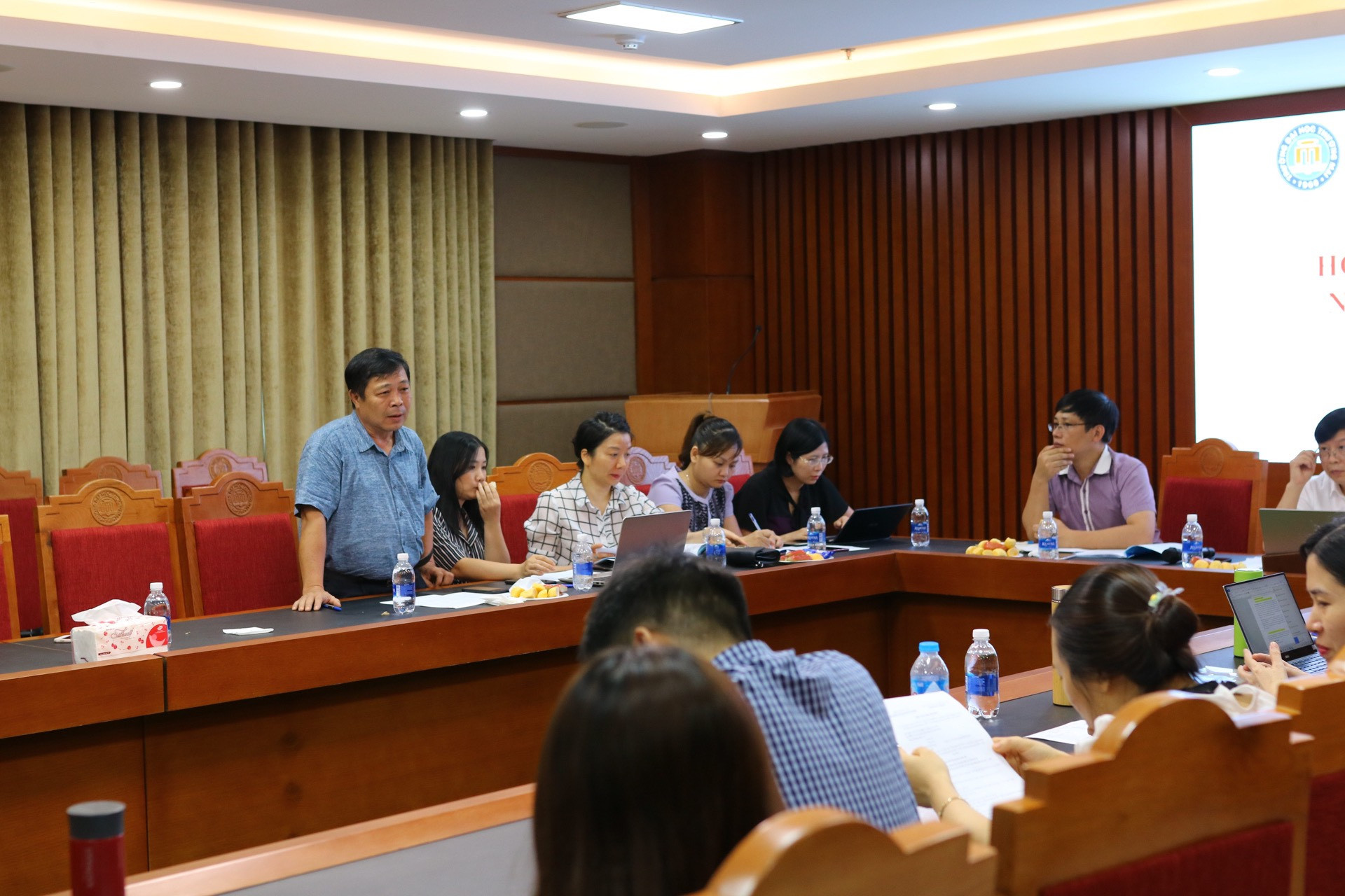 ♦️ Hội nghị đã tóm tắt Báo cáo kết quả thực hiện nhiệm vụ năm học 2019-2020 và phương hướng, nhiệm vụ năm học 2020-2021 của Khoa Kinh tế - Luật. Đồng thời, Hội nghị đã thảo luận, góp ý Báo cáo thực hiện Nghị quyết Hội nghị đại biểu CCVC năm học 2019-2020 và Báo cáo tổng kết năm học 2019-2020, phương hướng, nhiệm vụ năm học 2020- 2021 của Trường ĐH Thương mại. Những ý kiến góp ý của cán bộ viên chức trong Khoa đã được PGS.TS Đỗ Minh Thành trả lời thỏa đáng.