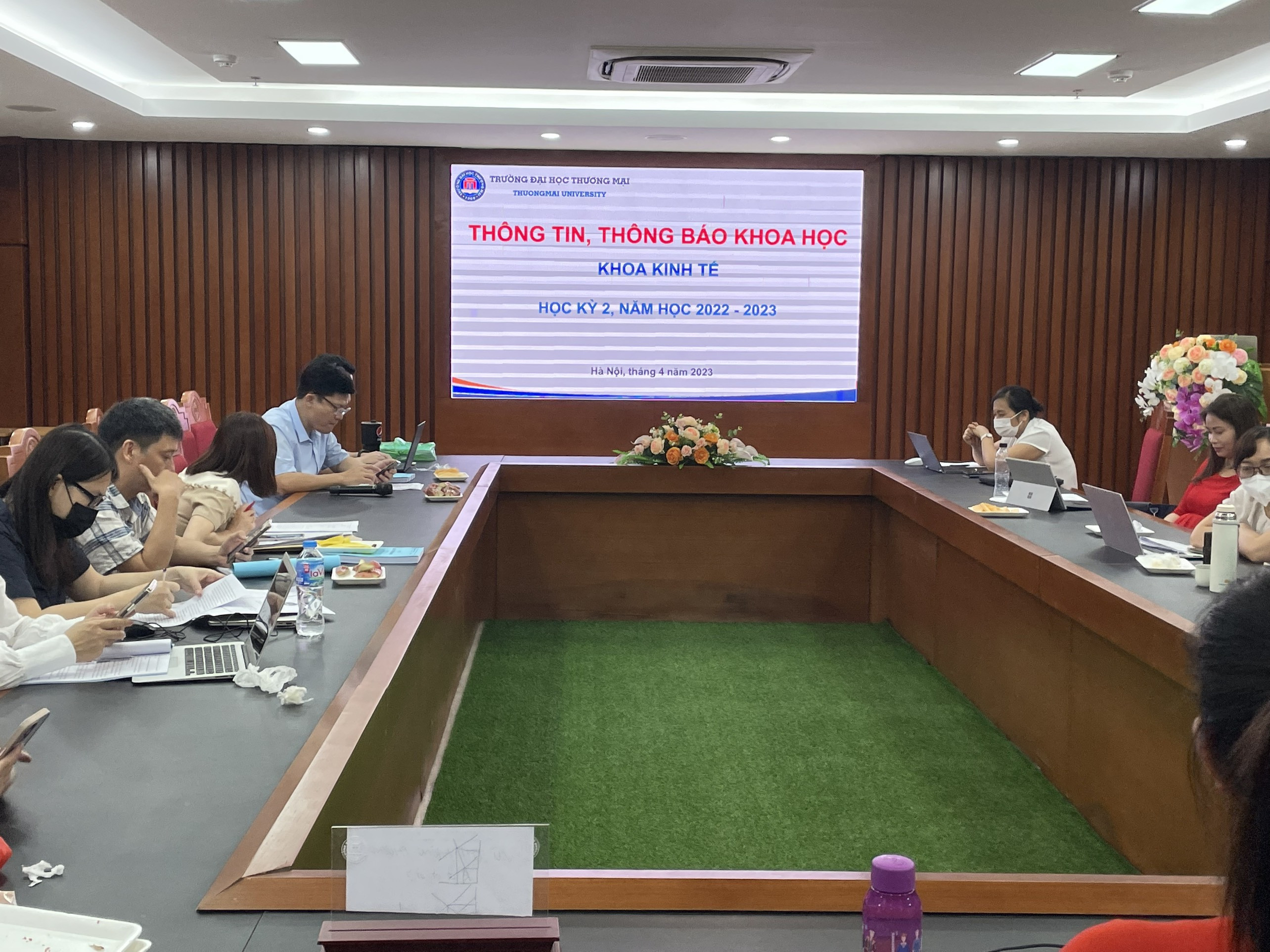 8h30 ngày 21/12/2022, tại phòng Hội thảo số 2 nhà F, Khoa Kinh tế đã tổ chức Hội nghị thông tin, thông báo khoa học Khoa Kinh tế học kỳ 1 năm học 2022-2023. Hội nghị vinh dự đón nhận sự hiện diện của TS. Nguyễn Thị Mỵ Dung - Phó Trưởng phòng Quản lý khoa học; PGS.TS. Phan Thế Công - Trưởng Khoa Kinh tế và các thầy, cô giáo, NCS đang sinh hoạt chuyên môn tại Khoa Kinh tế