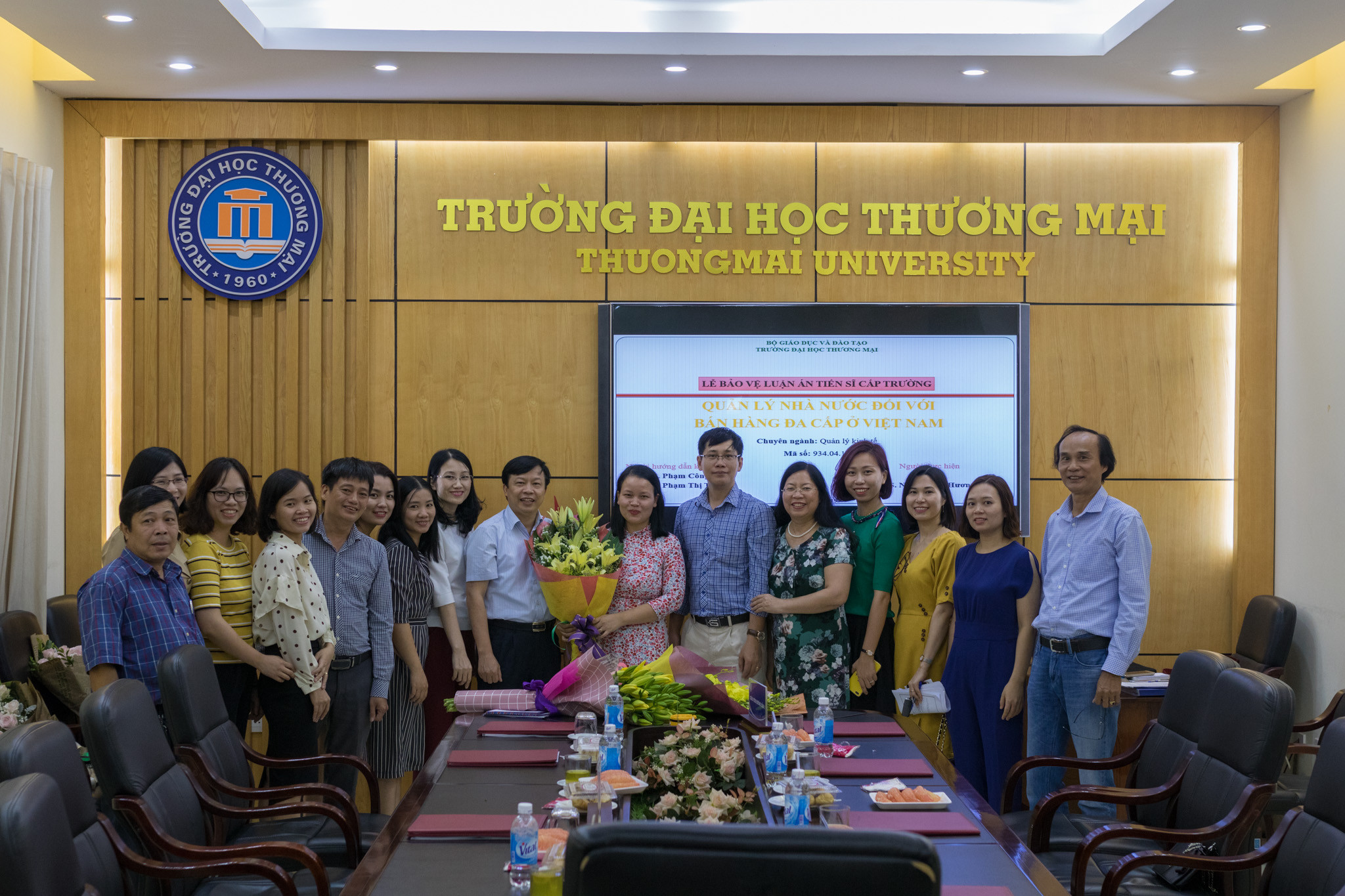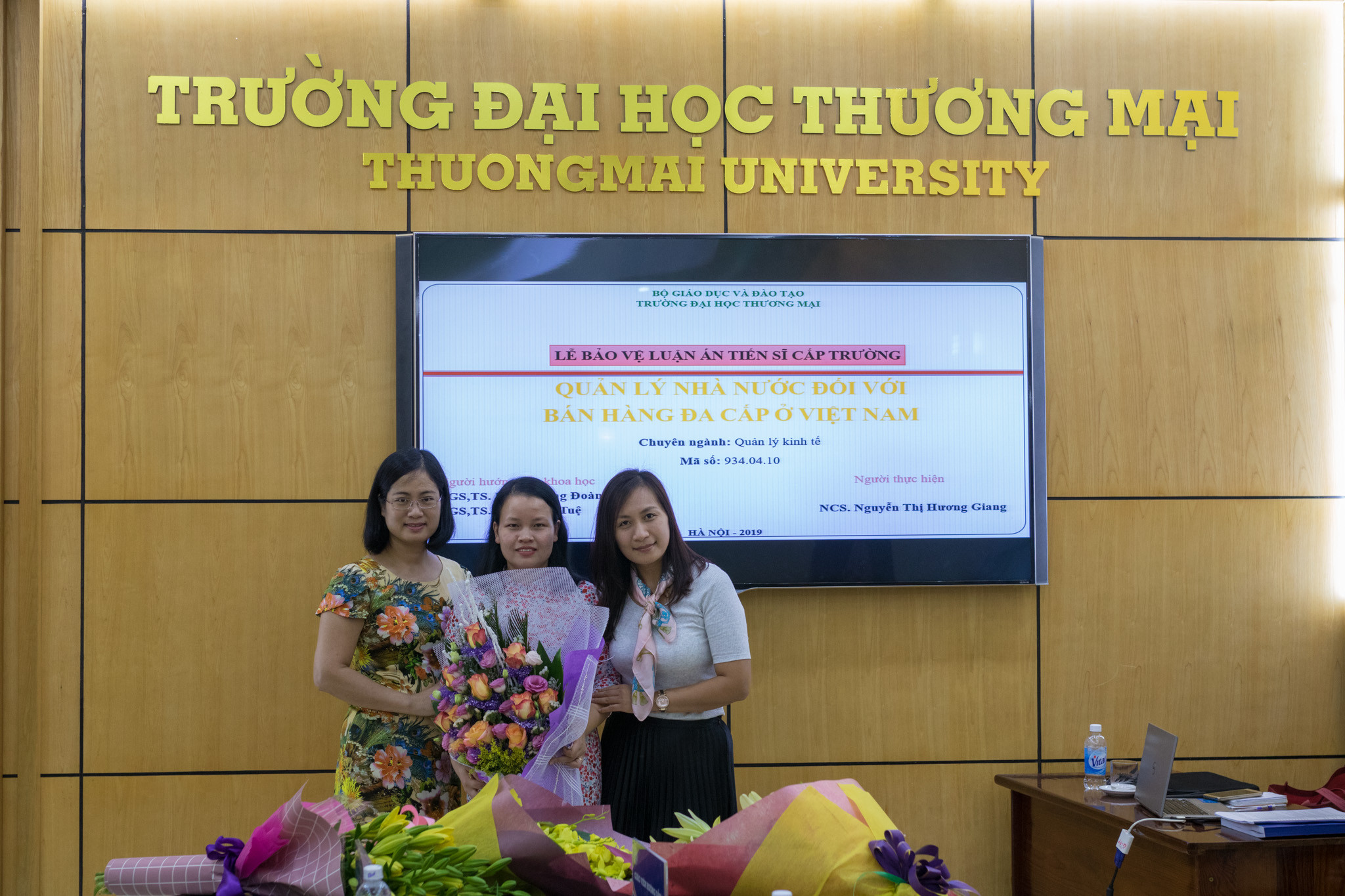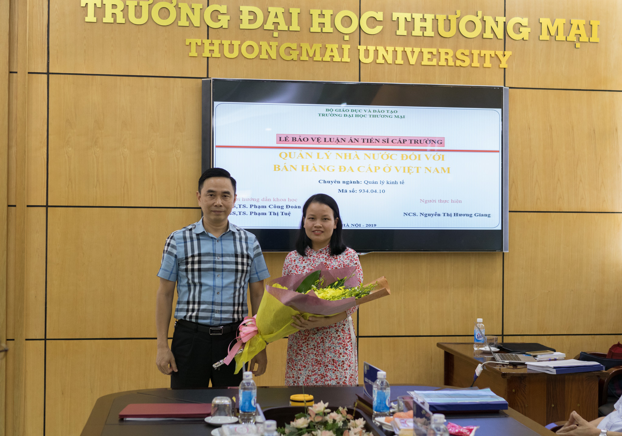 Sáng ngày 16/10/2019, Trường ĐH Thương mại đã tổ chức Lễ bảo vệ luận án tiến sĩ cấp trường cho nghiên cứu sinh (NCS) Nguyễn Thị Hương Giang, chuyên ngành Quản lý kinh tế, mã số: 934.04.10 với đề tài “Quản lý nhà nước đối với bán hàng đa cấp ở Việt Nam”, dưới sự hướng dẫn của PGS.TS. Phạm Công Đoàn và PGS.TS. Phạm Thị Tuệ