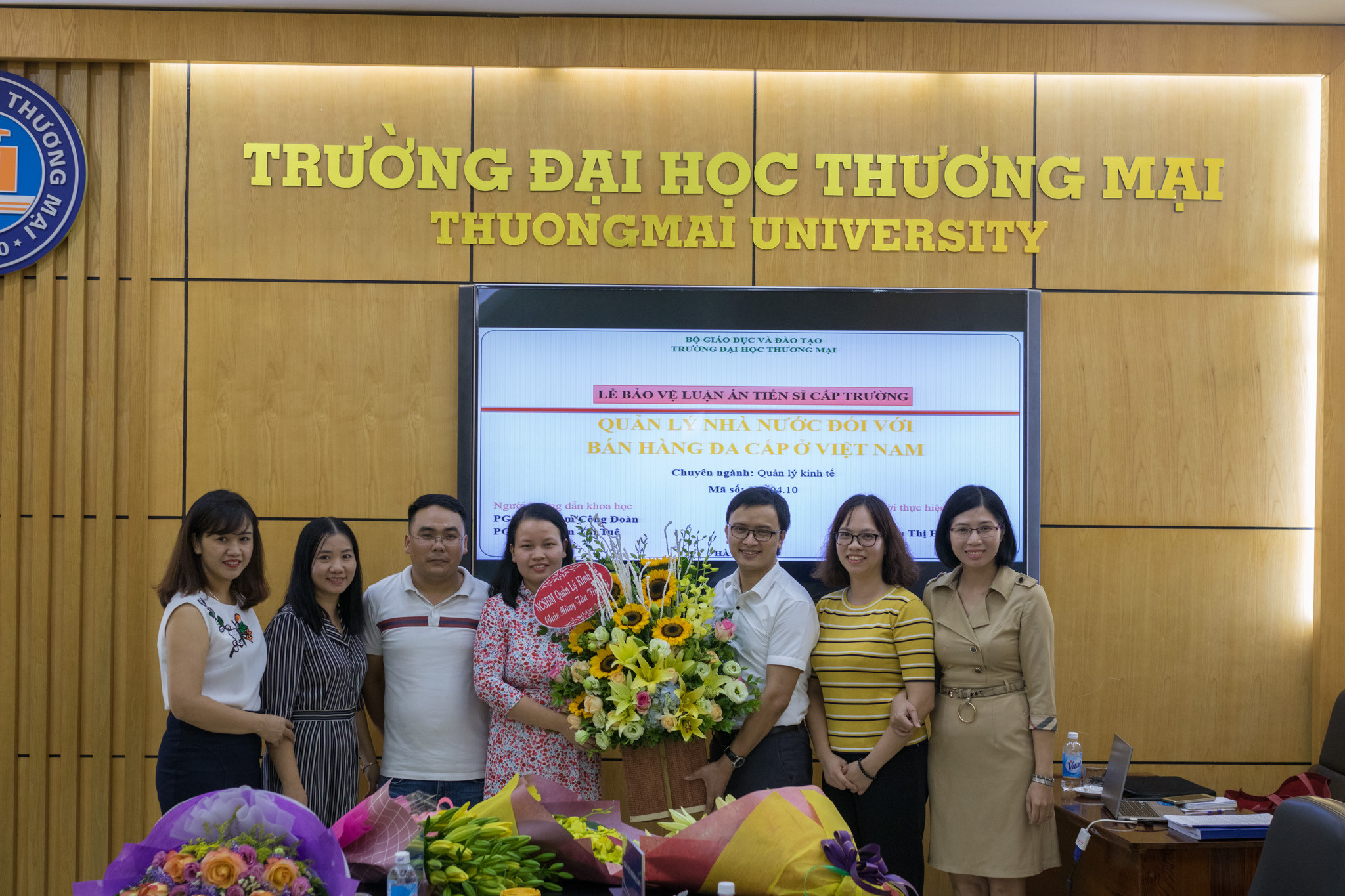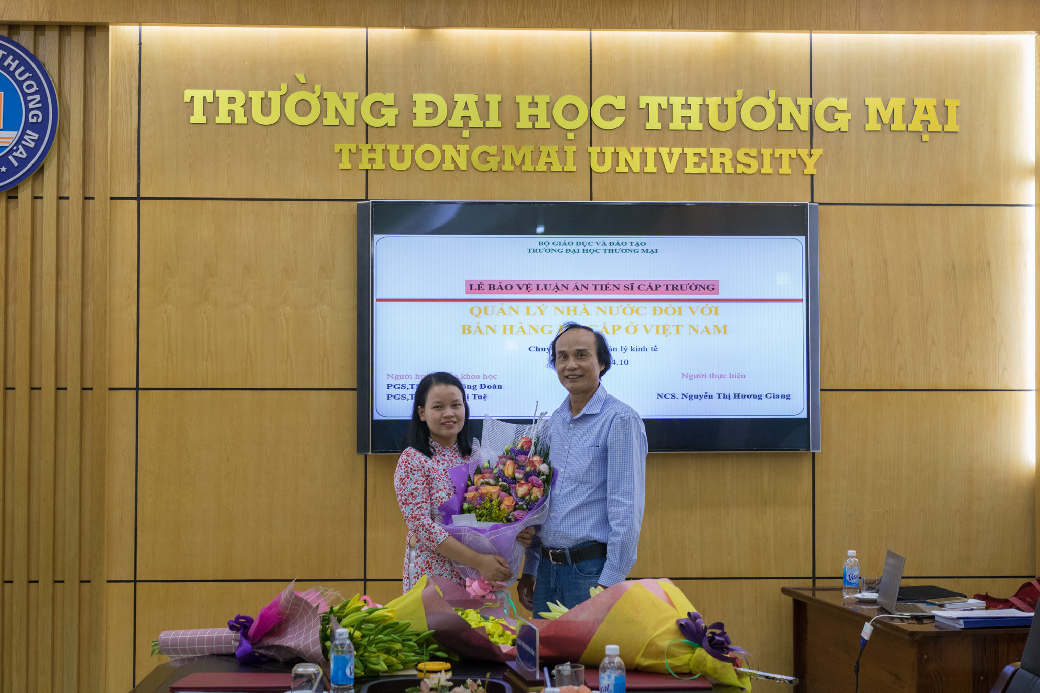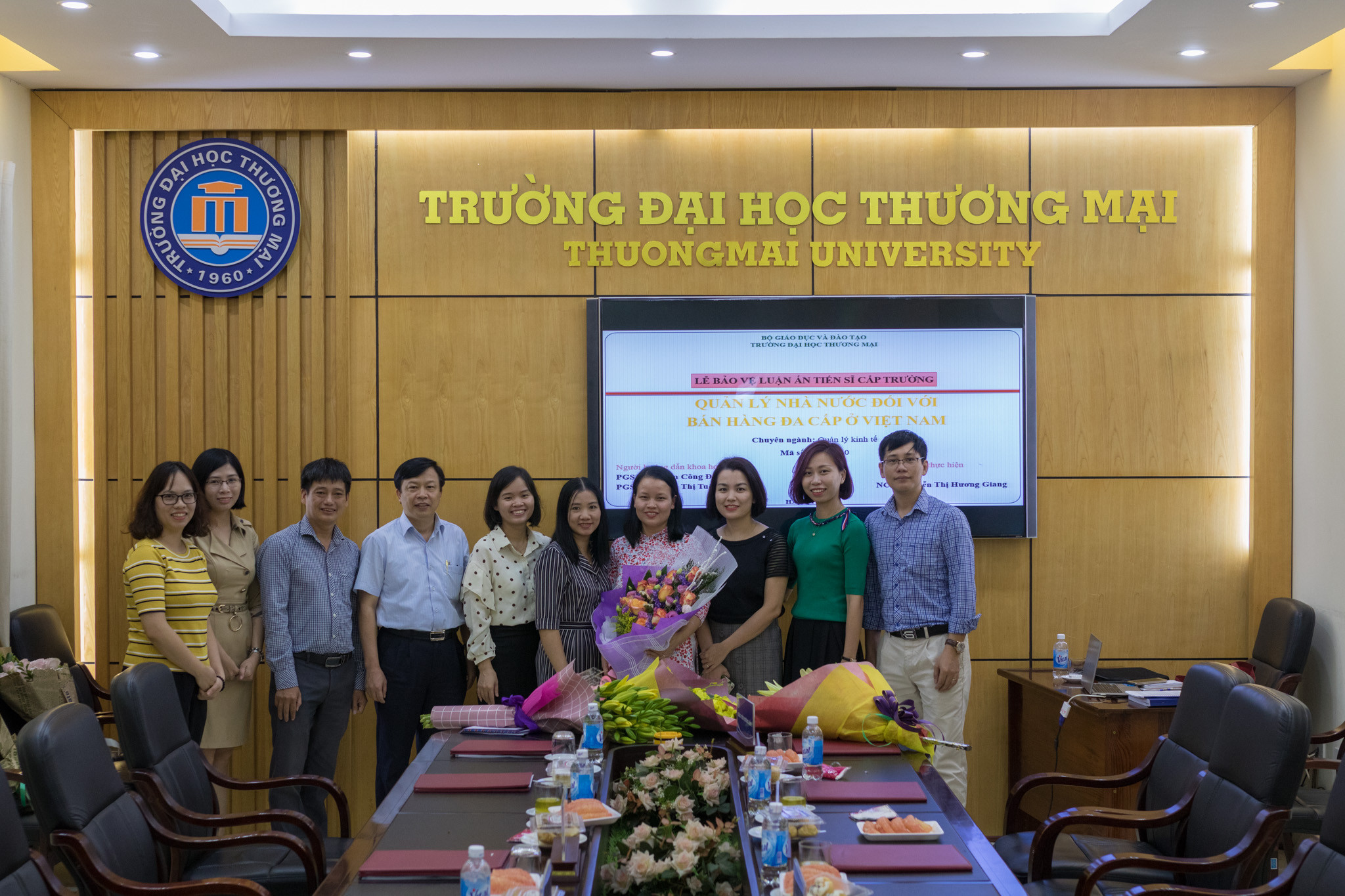 Sáng ngày 16/10/2019, Trường ĐH Thương mại đã tổ chức Lễ bảo vệ luận án tiến sĩ cấp trường cho nghiên cứu sinh (NCS) Nguyễn Thị Hương Giang, chuyên ngành Quản lý kinh tế, mã số: 934.04.10 với đề tài “Quản lý nhà nước đối với bán hàng đa cấp ở Việt Nam”, dưới sự hướng dẫn của PGS.TS. Phạm Công Đoàn và PGS.TS. Phạm Thị Tuệ