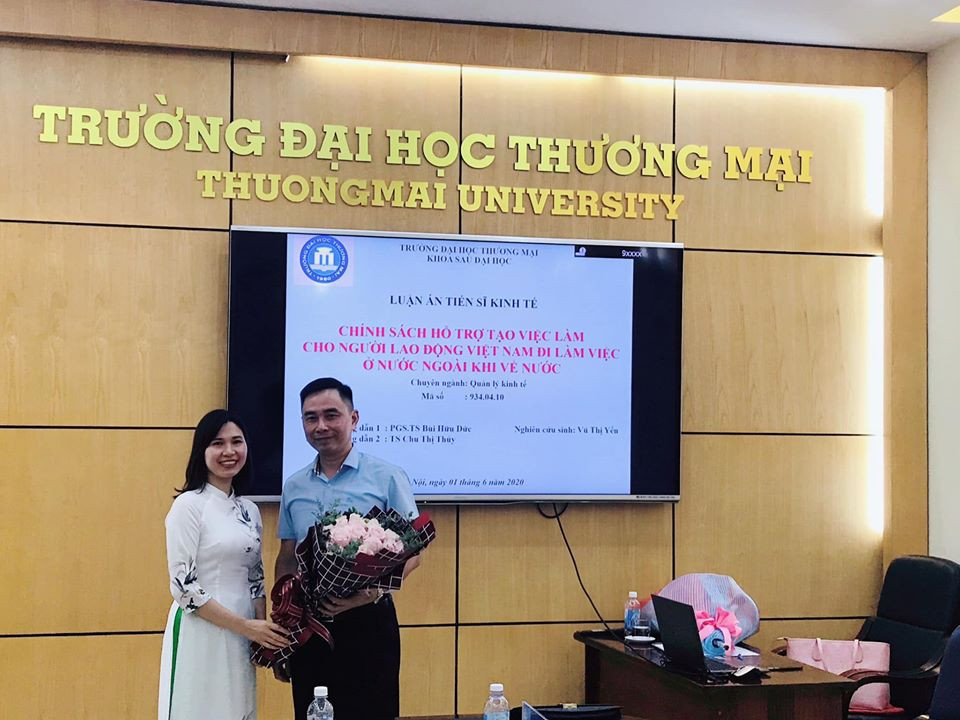 14h chiều ngày 01/06/2020, Trường ĐH Thương mại đã tổ chức Lễ bảo vệ luận án tiến sĩ cấp trường cho nghiên cứu sinh (NCS) Vũ Thị Yến, chuyên ngành Quản lý kinh tế, mã số: 934.04.10 với đề tài “Chính sách hỗ trợ tạo việc làm cho người lao động Việt Nam đi làm việc ở nước ngoài khi về nước”, dưới sự hướng dẫn của PGS.TS. Bùi Hữu Đức và TS. Chu Thị Thủy