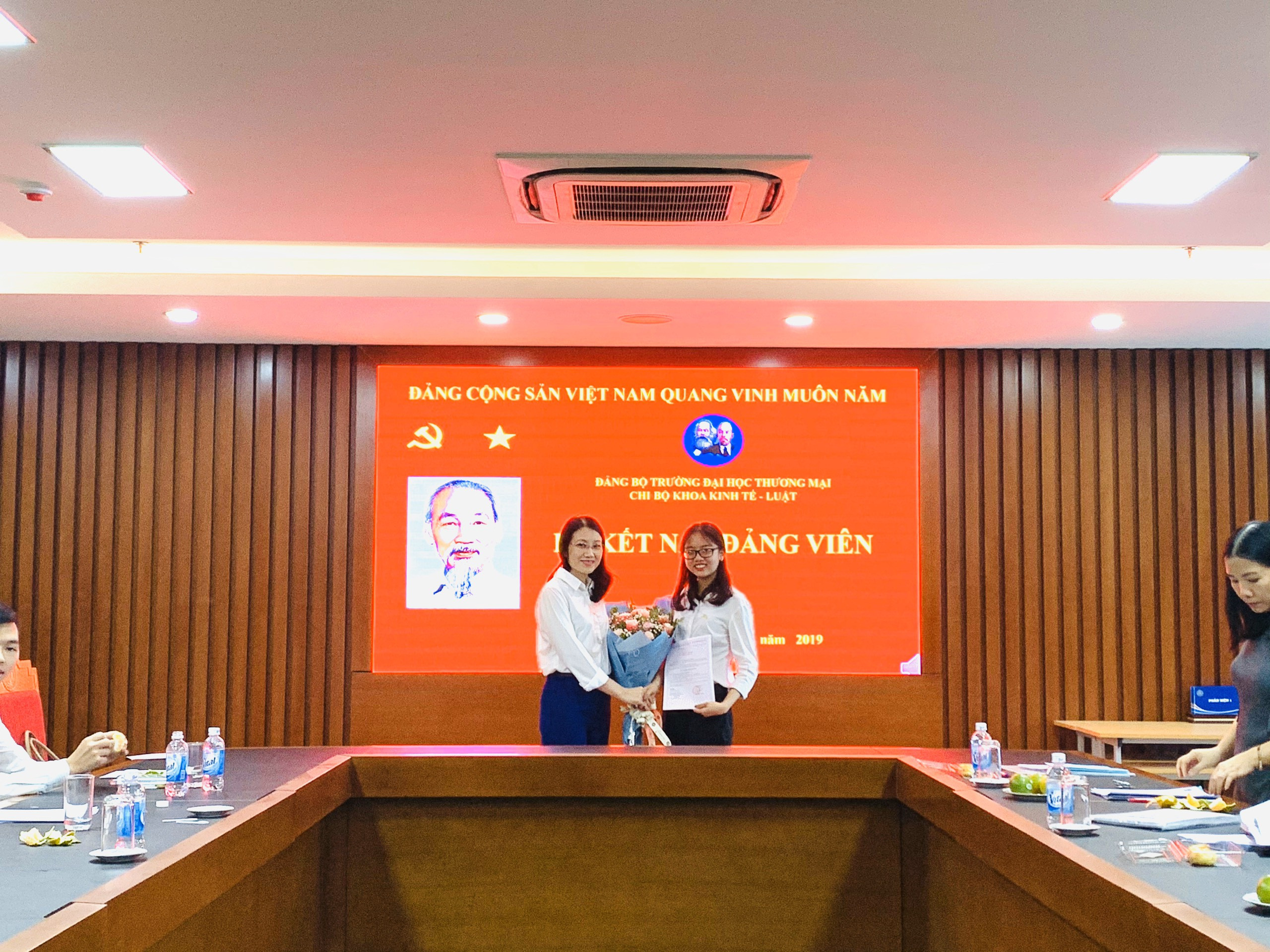 Được sự đồng ý của Đảng ủy Trường Đại học Thương mại, Chi bộ Khoa Kinh tế - Luật đã tổ chức Lễ kết nạp cho đảng viên mới vào lúc 9h sáng ngày 15/10/2019.