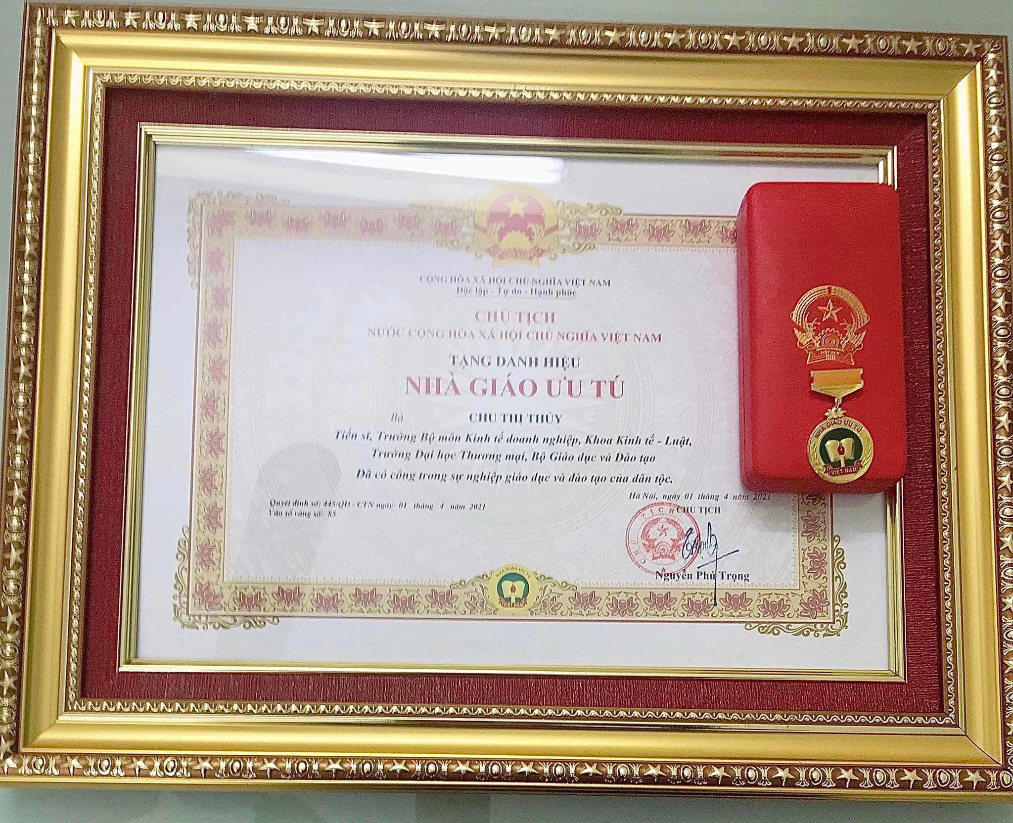 Đây là danh hiệu cao quý của Đảng và Nhà nước ta nhằm ghi nhận, tôn vinh và biểu dương những thành tích, những đóng góp thầm lặng mà lớn lao trong sự nghiệp trồng người! Xin chúc mừng TS. Chu Thị Thuỷ, kính chúc cô luôn dồi dào sức khoẻ và thành công trong sự nghiệp trồng người!