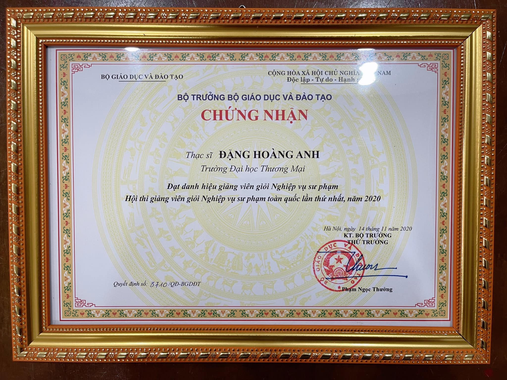 Ngoài ra cũng trong khuôn khổ buổi lễ, Khoa Kinh tế - Luật xin được chúc mừng cô giáo ThS Đặng Hoàng Anh - giảng viên bộ môn Quản lý kinh tế đạt danh hiệu Giảng viên giỏi Nghiệp vụ sư phạm Hội thi giảng viên giỏi Nghiệp vụ sư phạm toàn quốc lần thứ nhất, năm 2020.