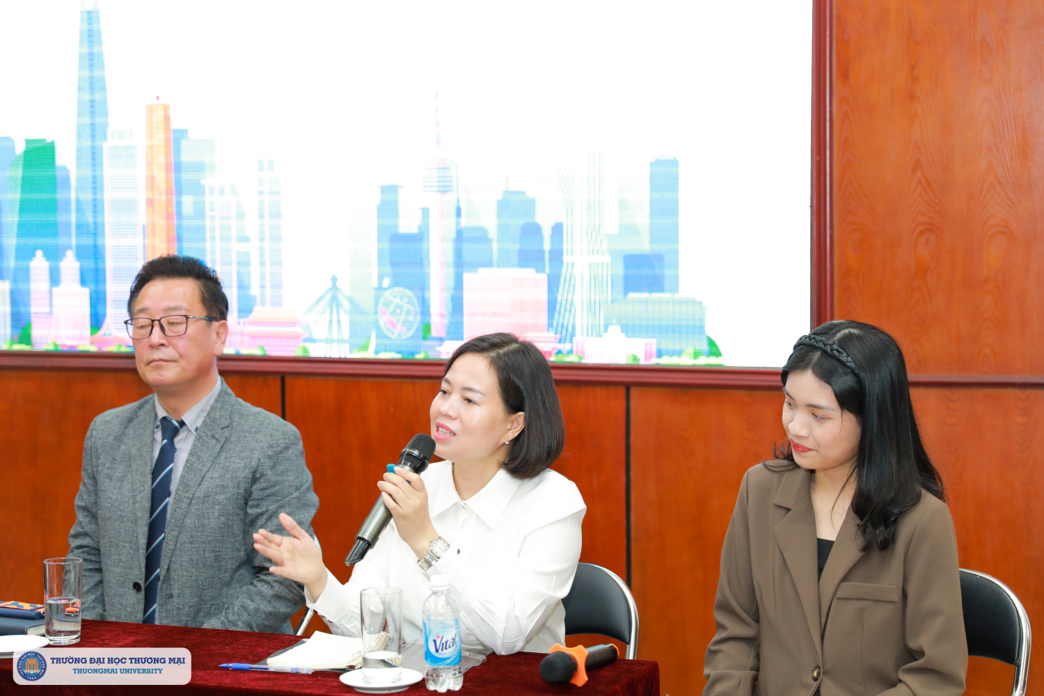 Tại buổi tọa đàm, Ông Choi Kwang, Giám đốc Marketing Công ty Cổ phần Truyền thông VIC Việt – Hàn đã có những chia sẻ hấp dẫn, thiết thực và chi tiết, giúp cho sinh viên Trường Đại học Thương mại có cái nhìn thực tế về làn sóng đầu tư của các doanh nghiệp Hàn Quốc đến Việt Nam, từ đó có thể chủ động trong việc chuẩn bị các kỹ năng, kiến thức cần thiết kịp thời nắm bắt những cơ hội ứng tuyển và làm việc tại các doanh nghiệp Hàn Quốc.