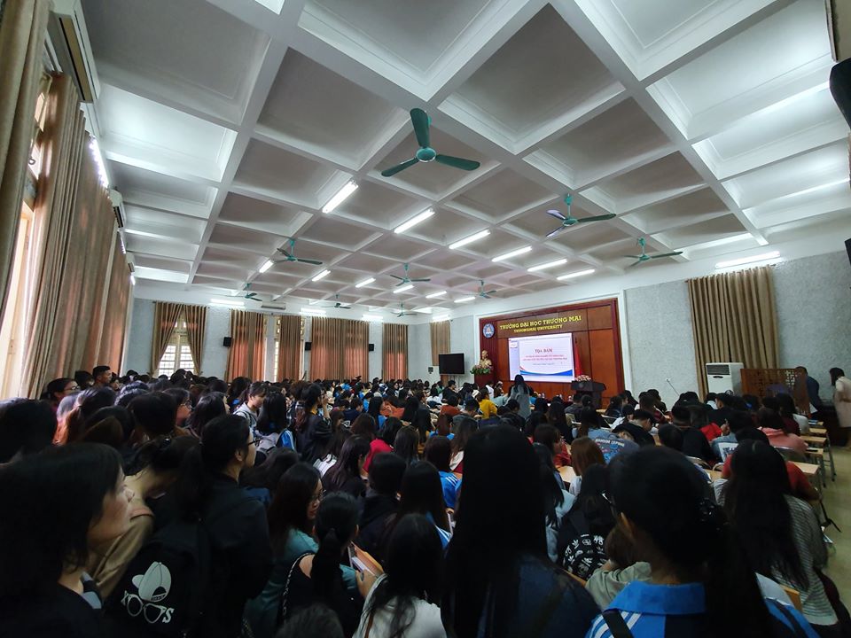 Tham dự buổi toạ đàm có TS Trần Việt Thảo, Phó trưởng phòng Phòng Quản lý Khoa học, ThS Phan Thu Trang, Bí thư Đoàn Thanh niên Cộng sản Hồ Chí Minh Trường ĐH Thương mại cùng các thầy cô đại diện các Khoa quản lý sinh viên và các phòng ban trong trường cùng đông đảo sinh viên Trường Đại học Thương mại.
